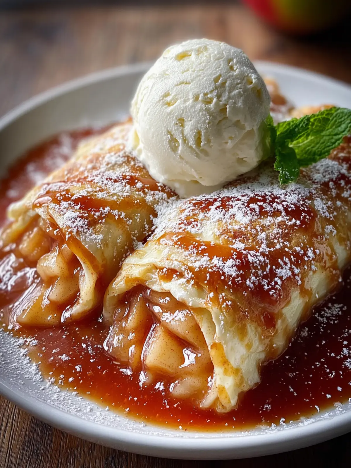 Imagine the warmth of freshly baked apple pie enchiladas paired with the cool, creamy texture of vanilla ice cream. The contrast between the two makes for a heavenly combination, where the rich vanilla complements the sweet cinnamon-spiced apples perfectly. This simple addition can turn a comforting dessert into an indulgent treat that everyone will cherish.
