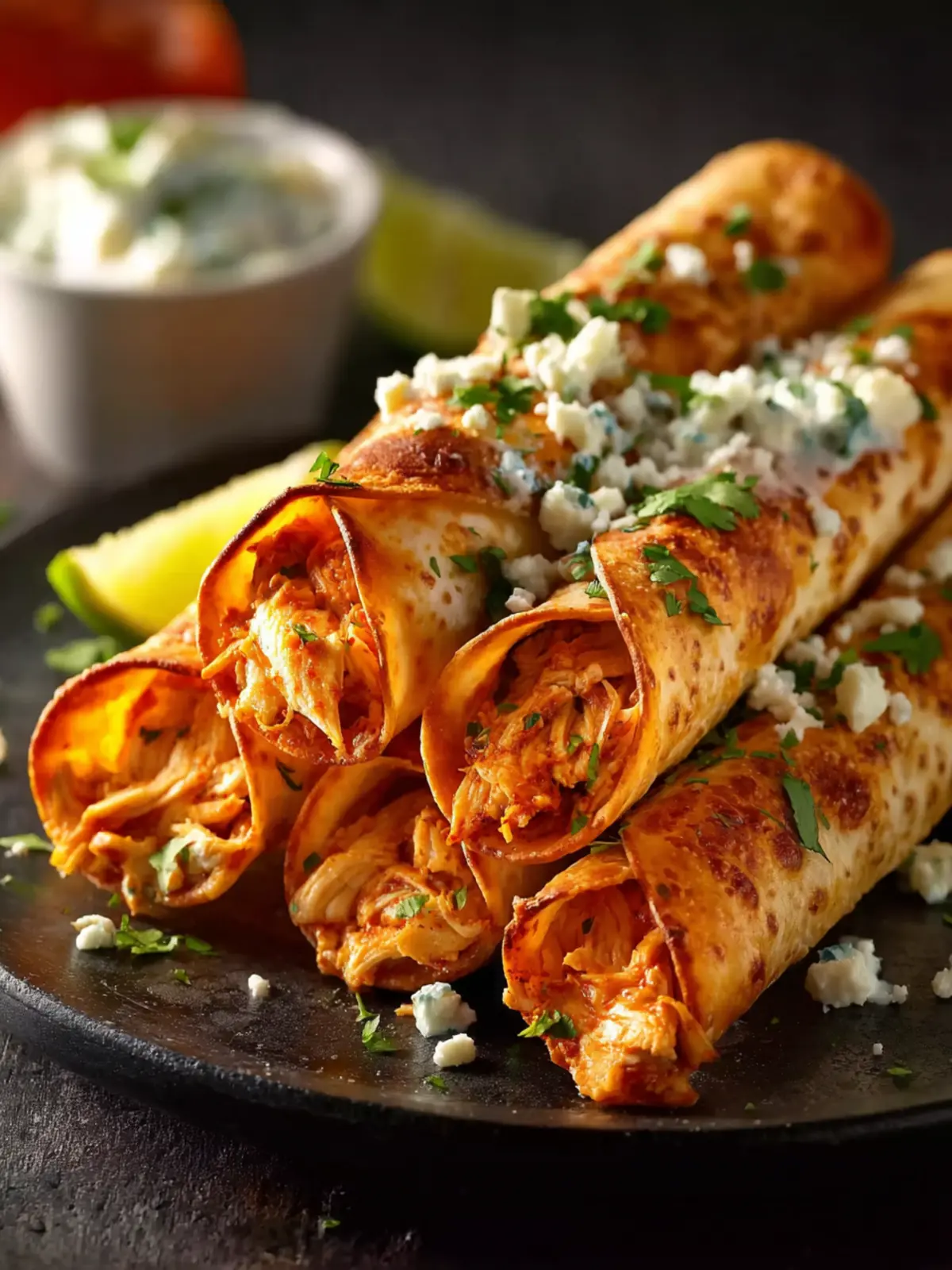 Delicious buffalo chicken taquitos that are crispy on the outside and packed with flavor.