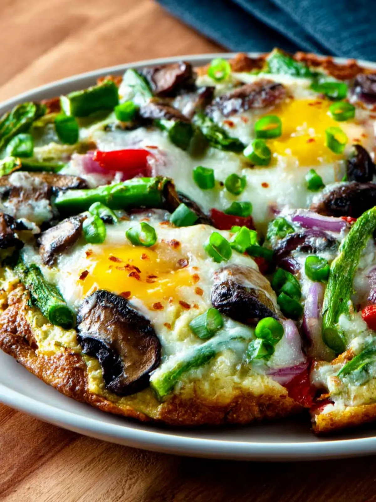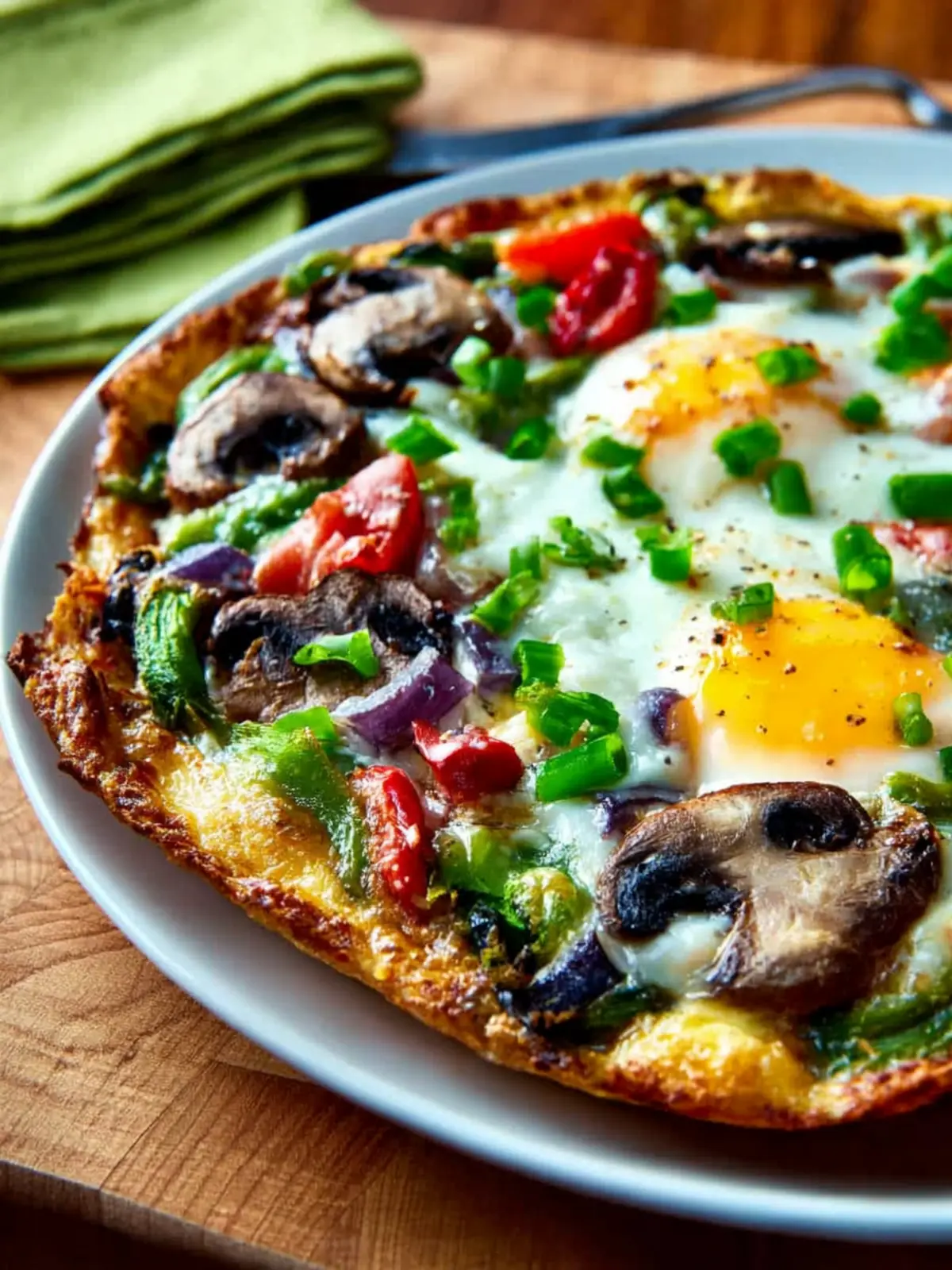 Embrace the delicious, nutritious adventure of making and enjoying your very own egg-crust vegetarian breakfast pizza!