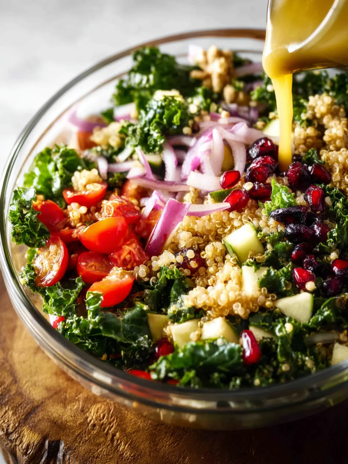 When assembling your salad, toss the kale, quinoa, and vegetables in a large bowl before adding the dressing. This ensures every bite is coated and flavors meld harmoniously.