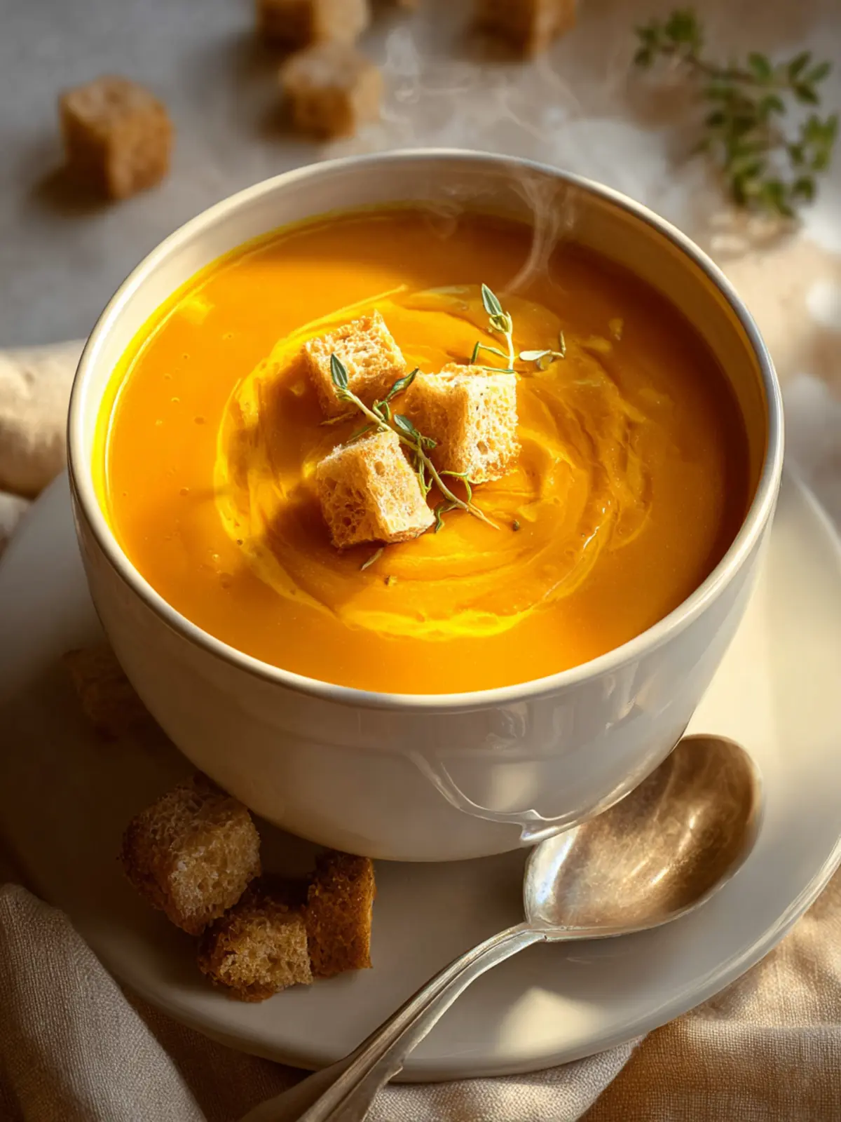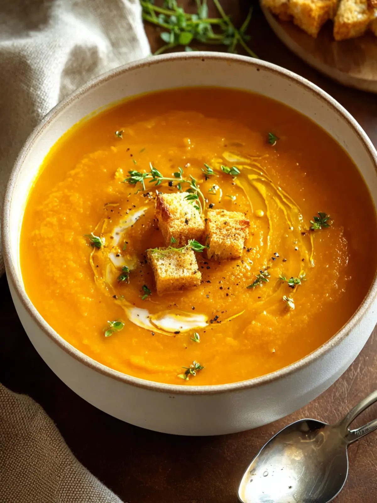 A delicious and creamy roasted butternut squash soup with vibrant flavors.
