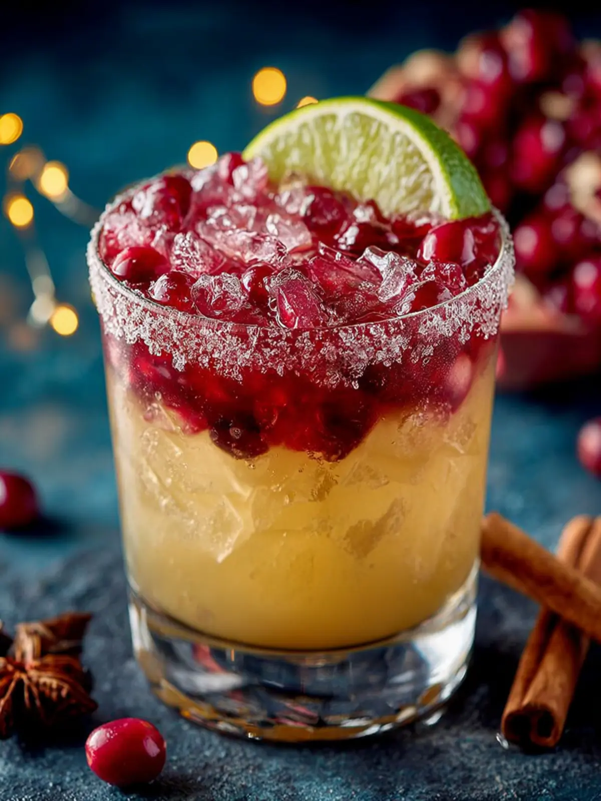 - Garnish: Add cranberries and a lime wedge for a festive look.