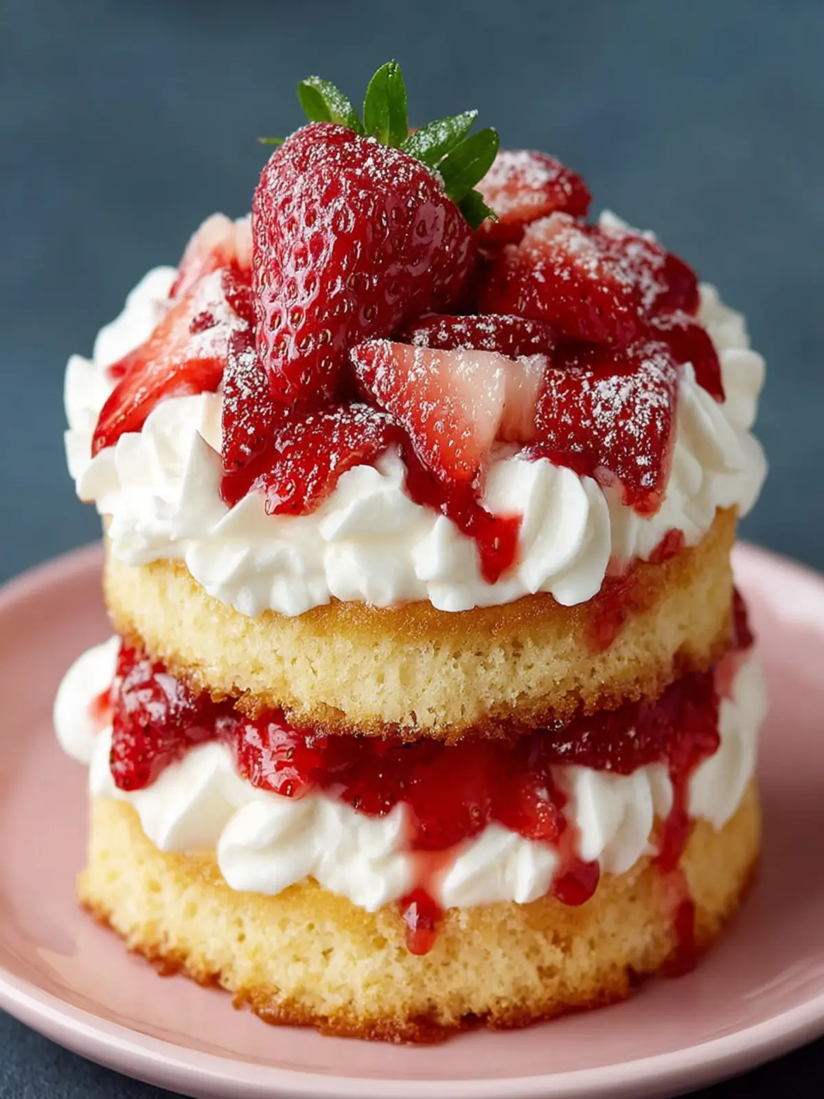 Tender Cake: The cake itself is light, fluffy, and buttery, forming the perfect base for the strawberries and whipped cream. Trust me, there’s nothing like the taste of homemade cake—its warm aroma fills your kitchen and wraps you in comfort.